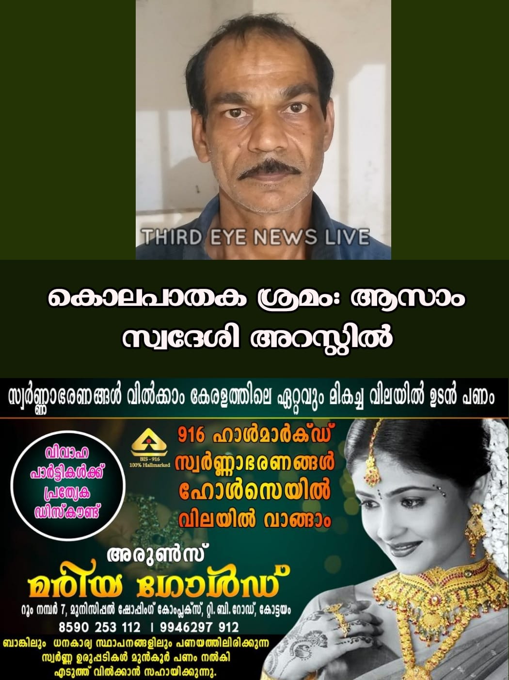 പരാതിയെ തുടർന്ന് കോട്ടയം ഈസ്റ്റ് പോലീസ് കേസ് രജിസ്റ്റർ ചെയ്യുകയും ഭീമാലാലിനെ പിടികൂടുകയുമായിരുന്നു. കോട്ടയം ഈസ്റ്റ് സ്റ്റേഷൻ എസ്.എച്ച്.ഓ യൂ. ശ്രീജിത്ത്, എസ്.ഐ അനുരാജ് എം. എച്ച്, രാജ് മോഹൻ, സി.പി.ഓ മാരായ ജയൻ, ബിനീഷ് രാജ് എന്നിവർ ചേർന്നാണ് ഇയാളെ അറസ്റ്റ് ചെയ്തത്. ഇയാളെ കോടതിയിൽ ഹാജരാക്കി.