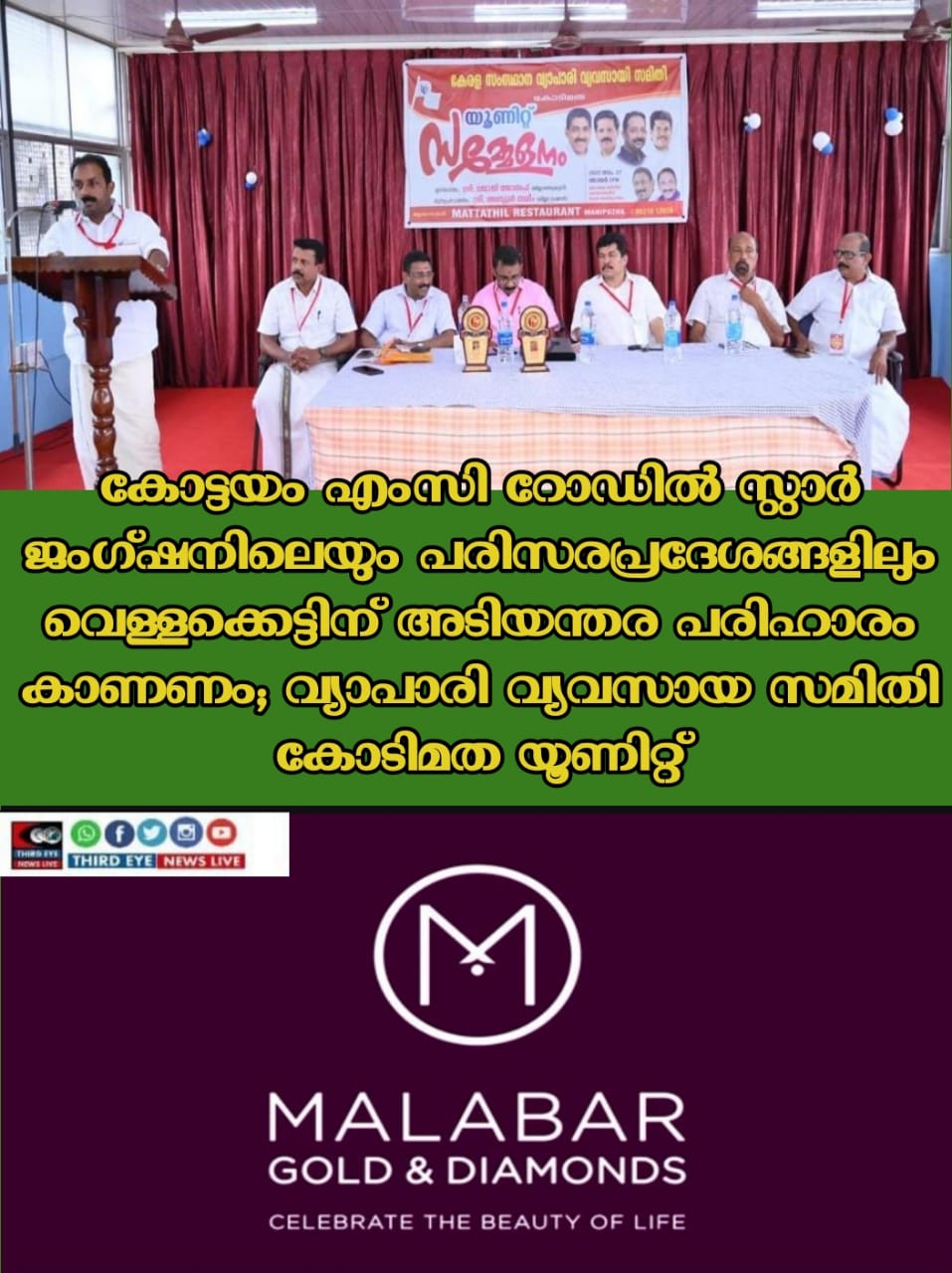 എംസി റോഡിൽ സ്റ്റാർ ജംഗ്ഷനിലെയും പരിസരപ്രദേശങ്ങളിലും വെള്ളക്കെട്ടിന് അടിയന്തര പരിഹാരം കാണണമെന്ന് വ്യാപാരി വ്യവസായ സമിതി കോടിമത യൂണിറ്റ് കൺവെൻഷൻ ആവശ്യപ്പെട്ടു. സമിതി ജില്ലാ സെക്രട്ടറി ജോജി ജോസഫ് കൺവെൻഷൻ ഉദ്ഘാടനം ചെയ്തു.