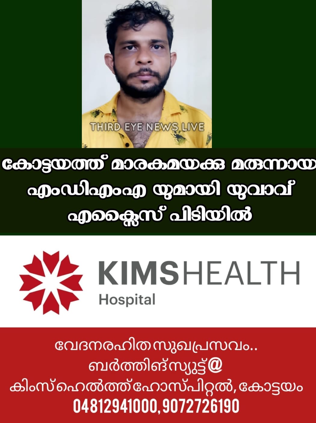 1.1699 ഗ്രാം എം.ഡി.എം.എ യുമായി അയ്മനം മര്യാതുരുത്ത് രാജ്ഭവനം വീട്ടിൽ ജയരാജിനെയാണ് കോട്ടയം എക്‌സൈസ് റേഞ്ച് ഉദ്യോഗസ്ഥർ രഹസ്യവിവരത്തിൻ്റെ അടിസ്ഥാനത്തിൽ അറസ്റ്റ് ചെയ്ത്.