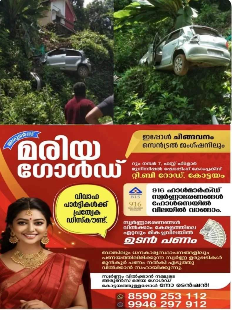കോട്ടയം മേലടുക്കത്ത് ബ്രേക്ക് നഷ്ടമായതിനെ തുടര്ന്ന് വീട്ടുമുറ്റത്തേക്ക് ഓടിച്ചുകയറ്റിയ കാര് സംരക്ഷണഭിത്തി ഇടിഞ്ഞുവീണ് അപകടത്തില്പ്പെട്ടു.