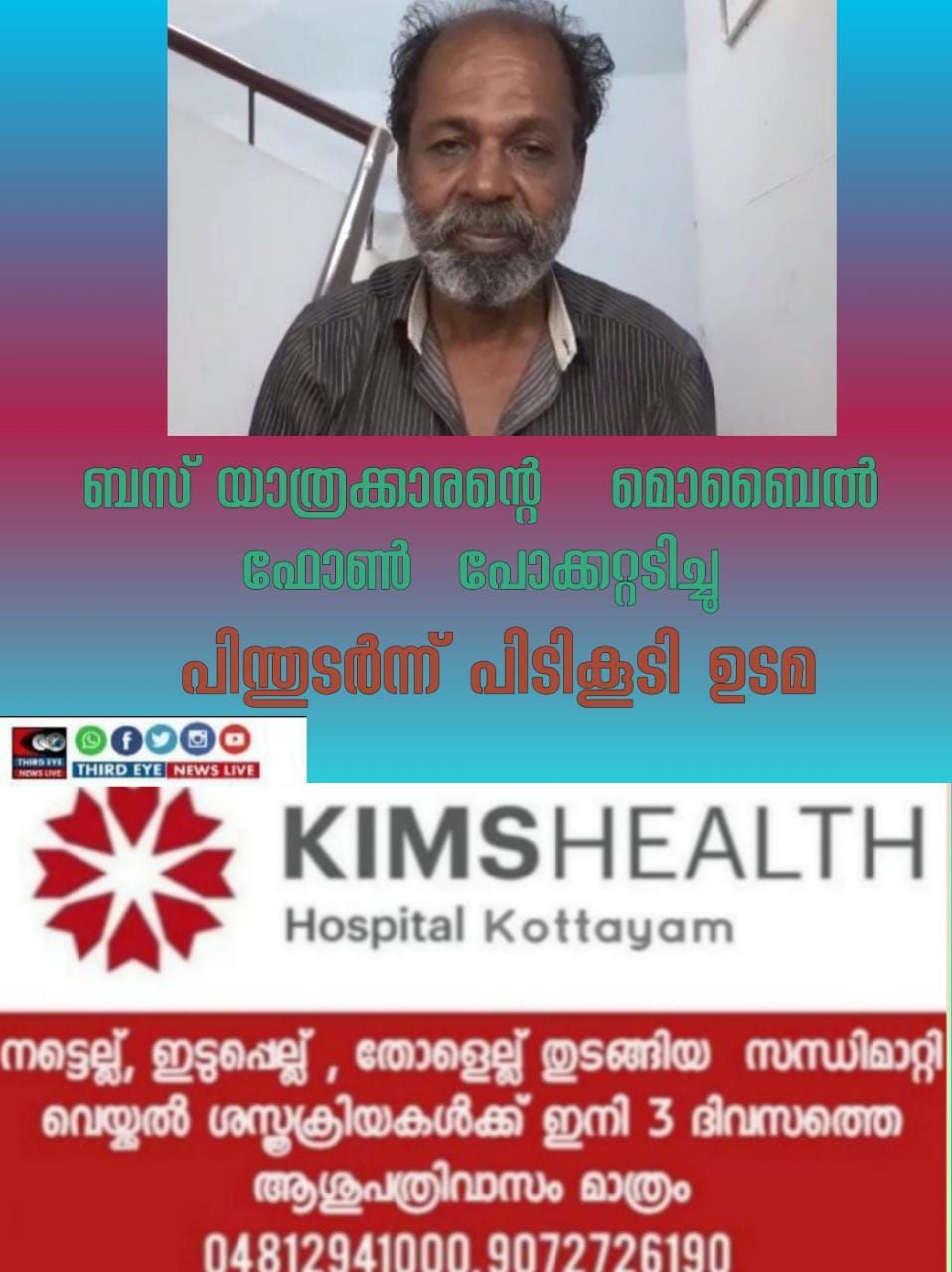 തിരുവല്ല: ബസ് യാത്രക്കാരന്റെ മൊബൈല് ഫോണ് പോക്കറ്റടിച്ച് അടിവസ്ത്രത്തില് ഒളിപ്പിച്ചയാളെ പിന്തുടര്ന്ന് പിടികൂടി.