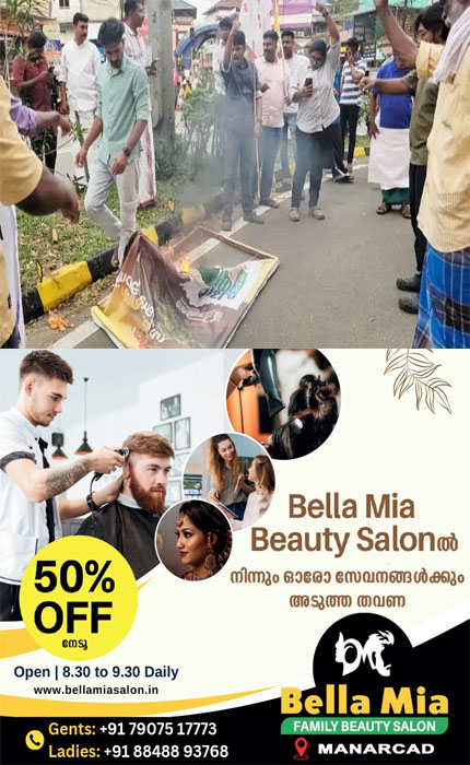 പേട്ടക്കവലയില്‍ വൈകിട്ട് നടന്ന പ്രതിഷേധ പ്രകടനത്തിനിടെയായിരുന്നു സംഭവം. കൊടിമരം തകർത്ത പ്രതിഷേധക്കാർ പ്രതിപക്ഷ നേതാവ് വി.ഡി. സതീശൻ നയിക്കുന്ന പുതുയുഗ യാത്രയുടെ ഫ്ലക്സ് ബോർഡുകള്‍ നശിപ്പിക്കുകയും ചെയ്തു.