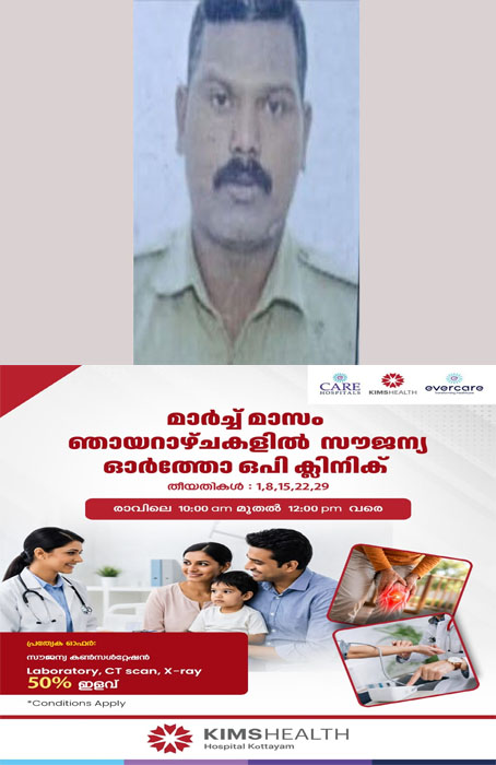 കോട്ടയം എസ് എച്ച് മൗണ്ടിൽ കെഎസ്ആർടിസി മിന്നൽ ബസിടിച്ച് പരിക്കേറ്റ എരുമേലി പോലീസ് സ്റ്റേഷനിലെ സിപിഒ കെ.ആർ അജീഷ് നിര്യാതനായി