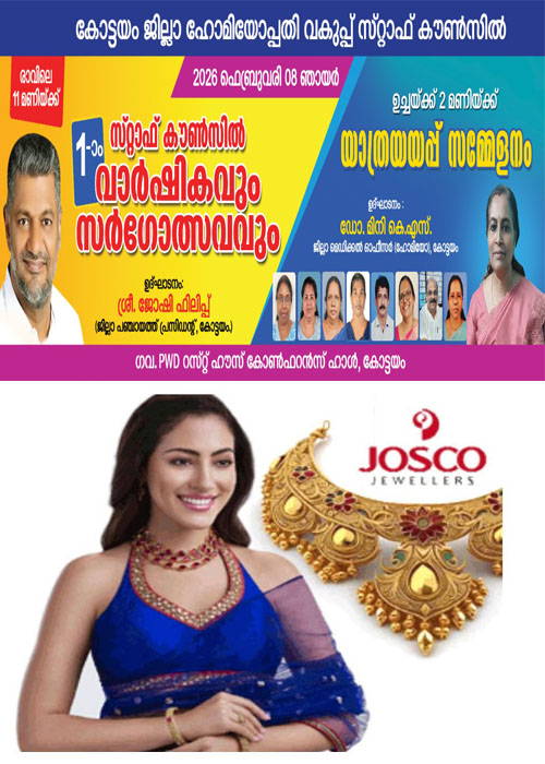കോട്ടയം: ജില്ലാ ഹോമിയോപ്പതി വകുപ്പ് സ്റ്റാഫ് കൗൺസിലിന്റെ ഒന്നാം വാർഷികവും സർഗോത്സവവും, യാത്രയയപ്പ് സമ്മേളനവും നാളെ രാവിലെ 11ന് ഗവ.പിഡബ്ല്യുഡി റസ്റ്റ് ഹൗസ് കോൺഫറൻസ് ഹാളിൽ നടക്കും. ജില്ലാ പഞ്ചായത്ത് പ്രസിഡന്റ് ജോഷി ഫലിപ്പ് ഉദ്ഘാടനം ചെയ്യും. പകൽ രണ്ടിന് നടക്കുന്ന യാത്രയയപ്പ് സമ്മളനം ഡിഎംഒ ഡോ. കെ എസ് മിനി ഉദ്ഘാടനം ചെയ്യും. ഡോ.സ്മിത പിതാംബരൻ അധ്യക്ഷയാകും.