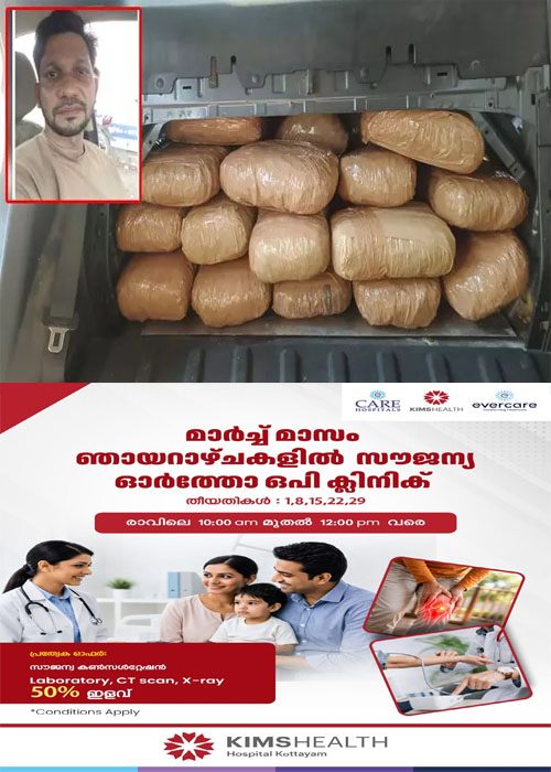 ഒഡീഷയിലെ ലഹരി മാഫിയയില് നിന്നും കഞ്ചാവ് വാങ്ങിയ പ്രതി കോട്ടയം ഭാഗത്തേക്ക് കാറില് വരികയായിരുന്നു. പോലീസിന്റെ കണ്ണുവെട്ടിക്കാന് ദേശീയപാത ഒഴിവാക്കി ഊടുവഴികളിലൂടെയാണ് പ്രതി സഞ്ചരിച്ചിരുന്നത്.