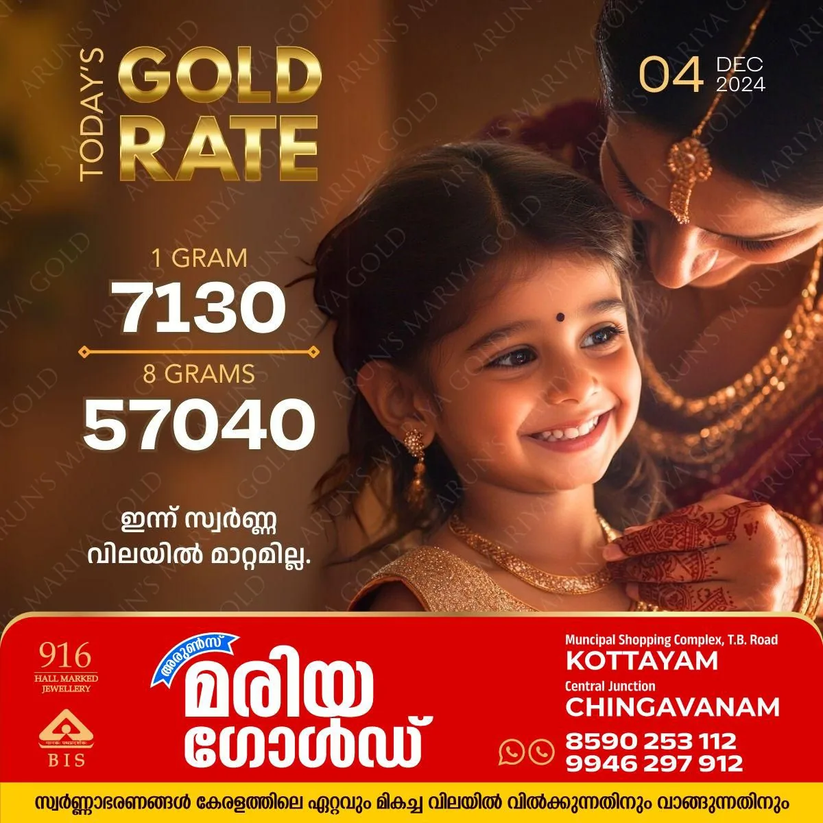 കോട്ടയം അരുൺസ് മരിയ ഗോൾഡിലെ ഇന്നത്തെ സ്വർണവില അറിയാം