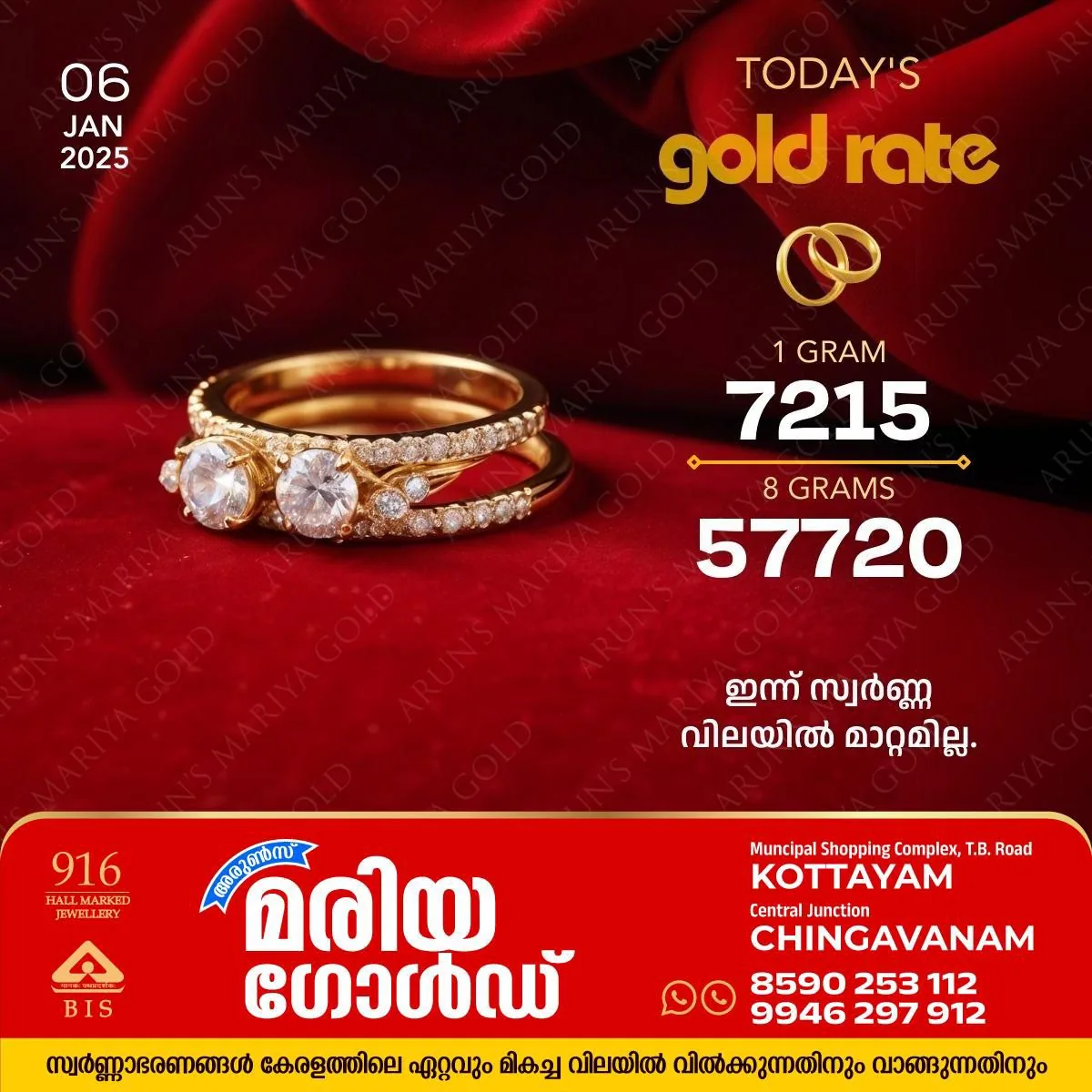 കോട്ടയം അരുൺസ് മരിയ ഗോൾഡിലെ ഇന്നത്തെ സ്വർണവില അറിയാം