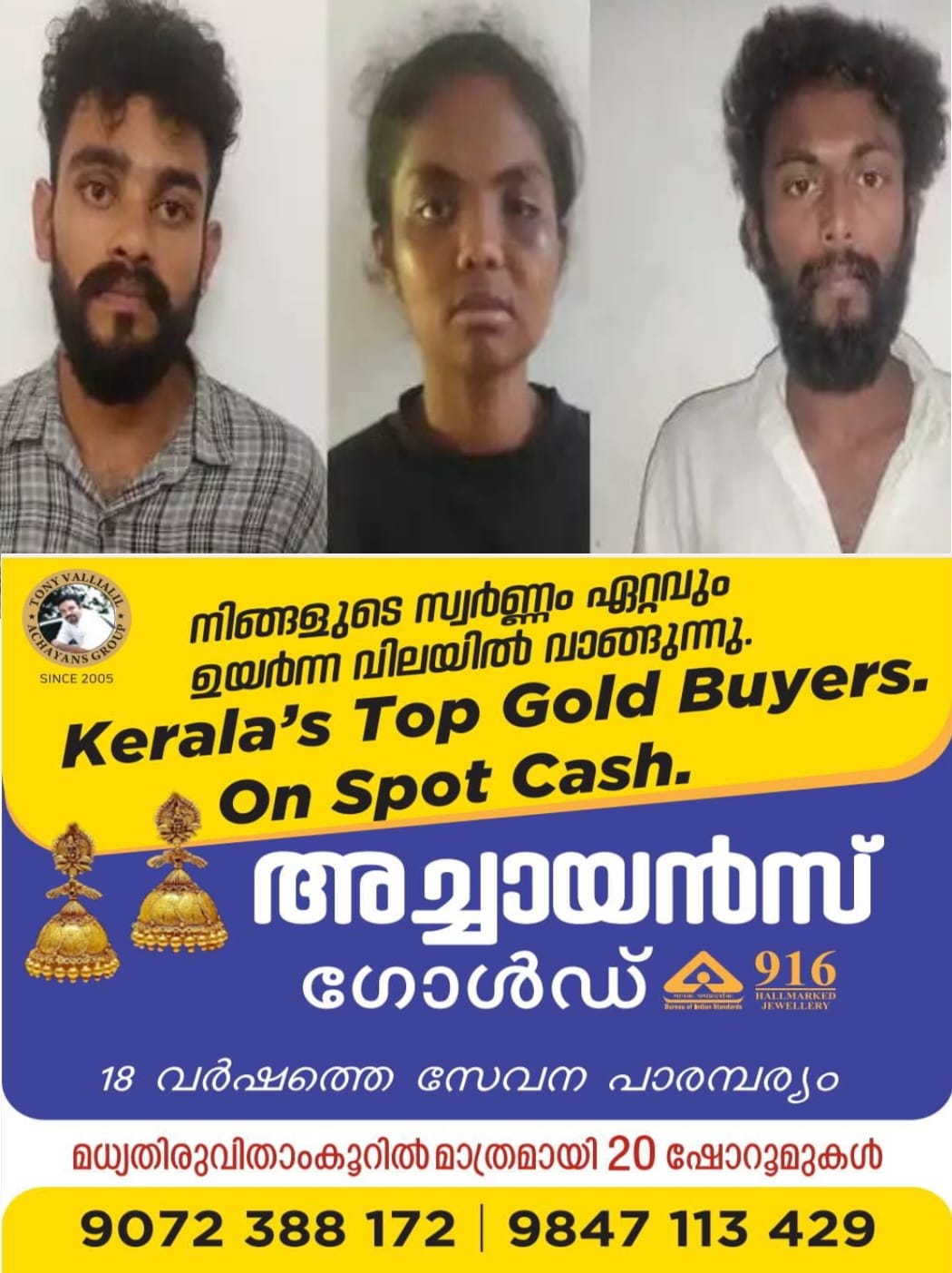 ഡോക്ടറുമായി പരിചയത്തിലായതിനു ശേഷം പുലര്‍ച്ചെ വടിവാളുമായി എത്തി ഭീഷണിപ്പെടുത്തി പണം തട്ടി; യുവതിയടക്കം മൂന്നംഗ സംഘം അറസ്റ്റില്‍