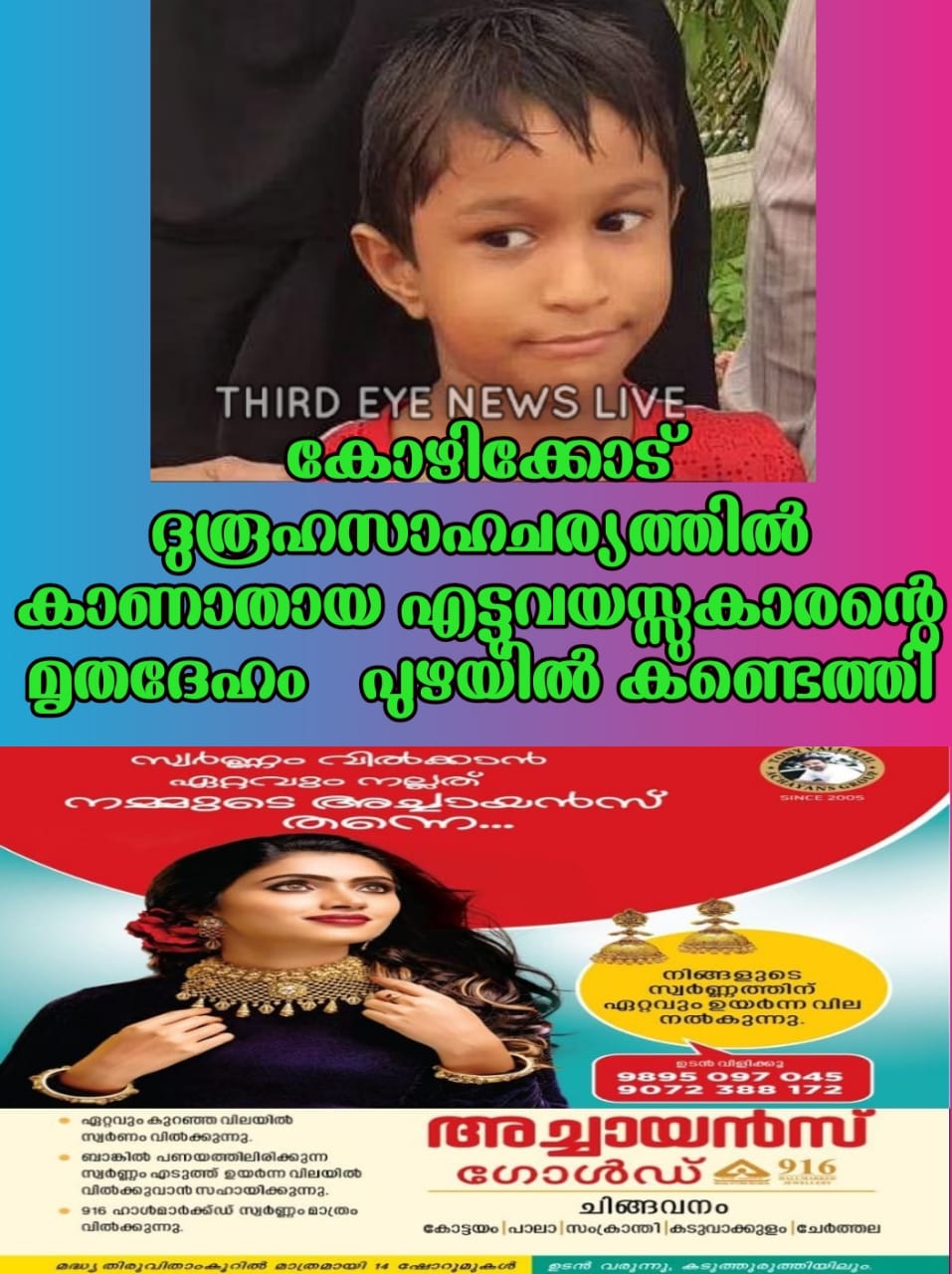കോഴിക്കോട്∙ താമരശ്ശേരി അണ്ടോണയിൽ കാണാതായ എട്ടുവയസ്സുകാരന്റെ മൃതദേഹം പുഴയിൽ കണ്ടെത്തി.