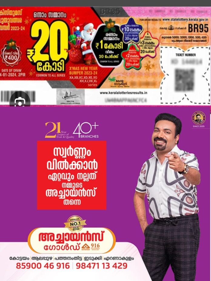 ക്രിസ്മസ് പുതുവത്സര ബംപർ 20 കോടി കോട്ടയത്ത് വിറ്റ ടിക്കറ്റിന്