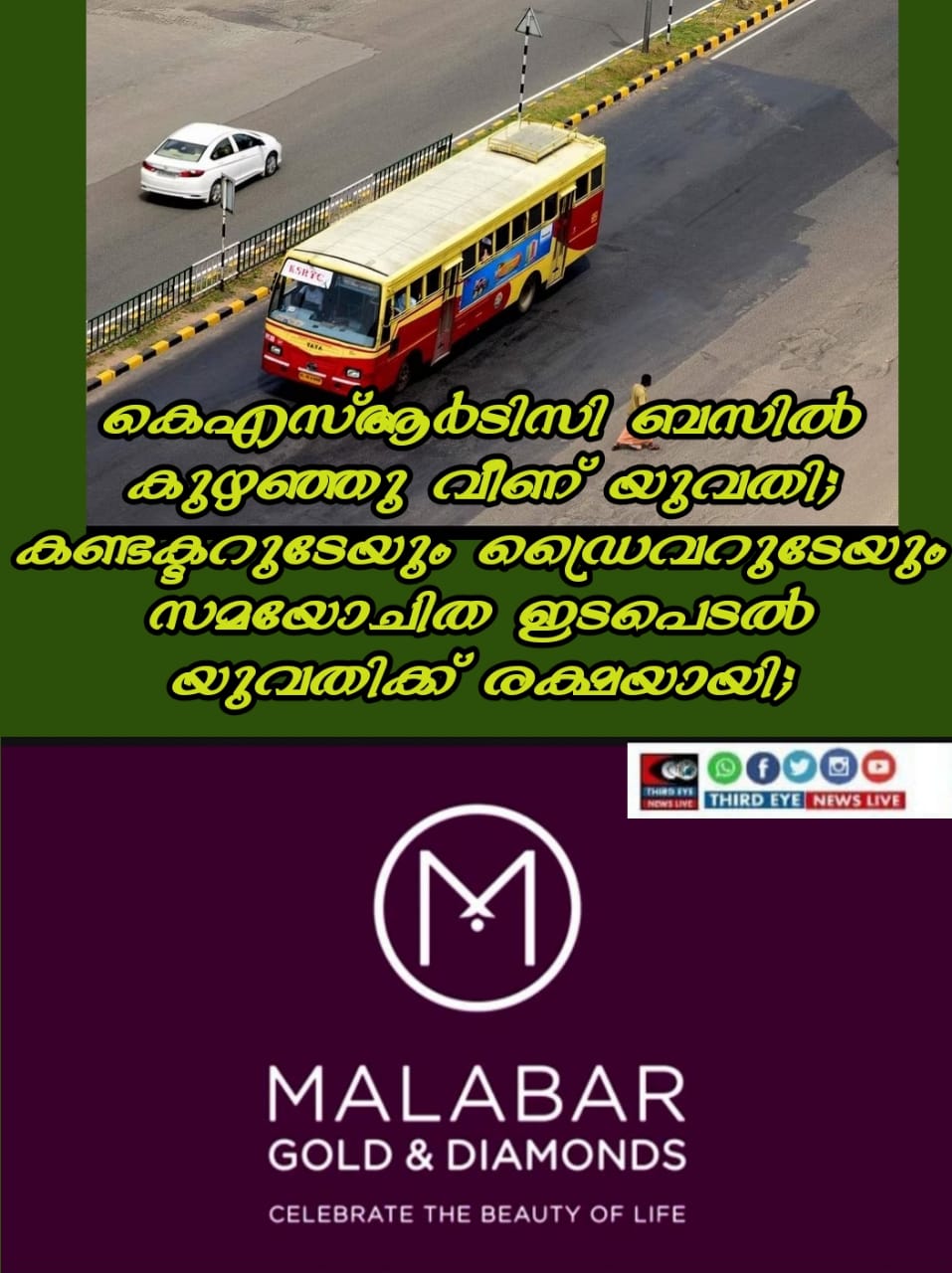 ബസിലെ അത്യാവശ്യ യാത്രക്കാരെ മറ്റൊരു ബസില് കയറ്റിവിട്ട് കണ്ടക്ടര് ഷാജിയും ഡ്രൈവര് സുനില് കുമാറും ആശുപത്രിയില്ത്തന്നെ തുടര്ന്നു. യുവതി അപകടനില തരണം ചെയ്തതിനു ശേഷമാണ് ഇവര് ആശുപത്രിയില് നിന്ന് പോയത്. ബസിലെ മറ്റു യാത്രക്കാരുടെ സഹകരണവും ഇവര്ക്ക് ലഭിച്ചു.