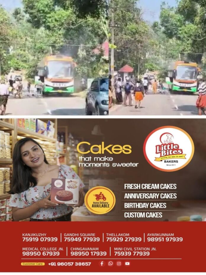 രാവിലെ ഒന്പത് മണിയോടെയാണ് സംഭവം. ഫയര്ഫോഴ്സ് എത്തുന്നതിന് മുന്പ് തന്നെ സമീപത്തുണ്ടായിരുന്ന വീട്ടുകാരും നാട്ടുകാരും ചേര്ന്ന് വെള്ളം ഒഴിച്ച് തീ നിയന്ത്രണ വിധേയമാക്കാന് ശ്രമിച്ചു. ബസില് നിന്ന് യാത്രക്കാരെ വേഗത്തിലിറക്കാനായതിനാല് വലിയ അപകടമാണ് ഒഴിവായത്.