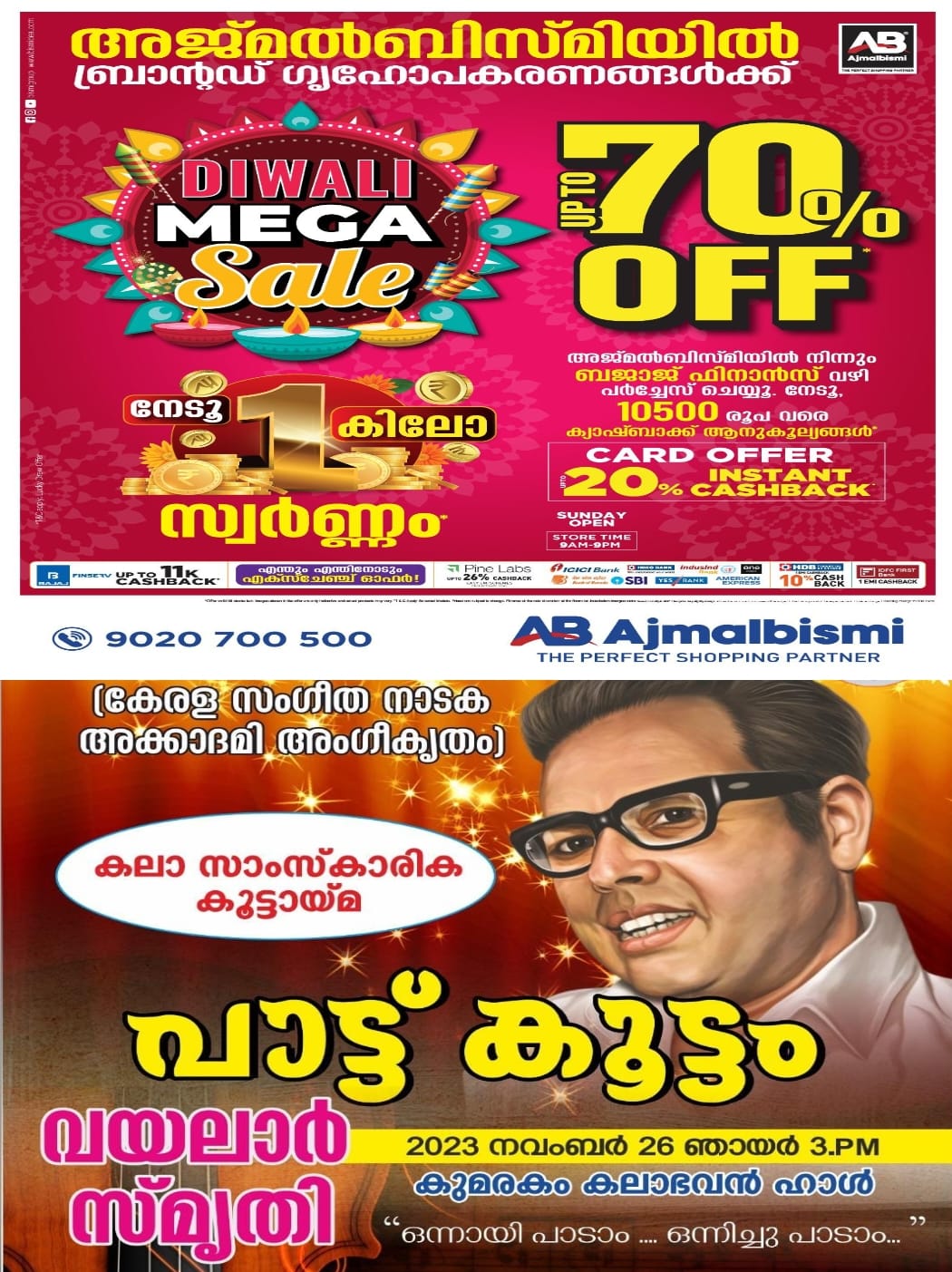 കലാഭവൻ . കലാഭവൻ്റെ ആഭിമുഖ്യത്തിൽ, കലാ സാംസ്കാരിക കൂട്ടായ്മയുടെ ഭാഗമായി, പാടുവാൻ ആഗ്രഹിക്കുന്നവർക്ക് കുമരകം കലാഭവനിൽ പാട്ടു കൂട്ടം എന്ന പേരിൽവേദി ഒരുങ്ങുകയാണ്.