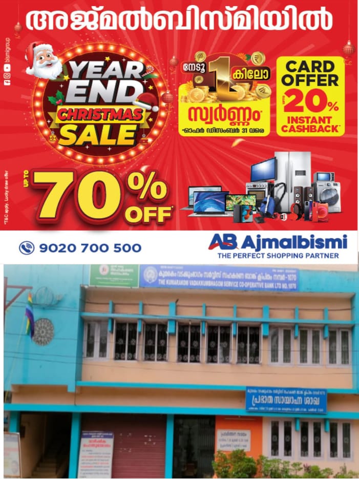 കുമരകം : വടക്കുംഭാഗം സർവ്വീസ് സഹകരണ .ബാങ്ക് ക്ലിപ്തം നമ്പർ 1070 ൻ്റെ 1 98-മത് . .. ഇന്നലെ ബാങ്കിൻ്റെ പ്ലാറ്റിനം ജൂബിലി ഹാളിൽ വച്ചാണ് വാർഷികാഘോഷങ്ങൾ നടന്നത്. ആഘോഷത്തോടനുബന്ധിച്ച് ഇന്നലെ രാവിലെ പത്തിന് ബാങ്ക് അങ്കണത്തിൽ ജേബു മാത്യൂ വിശാഖംതറ സഹകരണ പതാക ഉയർത്തി പ്രതിജ്ഞ ചൊല്ലിക്കൊടുത്തു.
