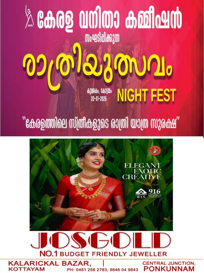 കോട്ടയം: സ്ത്രീകളുടെ രാത്രി യാത്രയിലെ സുരക്ഷിതത്വം ഉറപ്പാക്കുന്നതിന് സംസ്ഥാന വനിതാ കമ്മീഷൻ്റെ സുരക്ഷാ ഓഡിറ്റ് പദ്ധതിയുടെ ഭാഗമായി കുമരകത്ത് ‘രാത്രിയുത്സവം’ സംഘടിപ്പിക്കുന്നു.