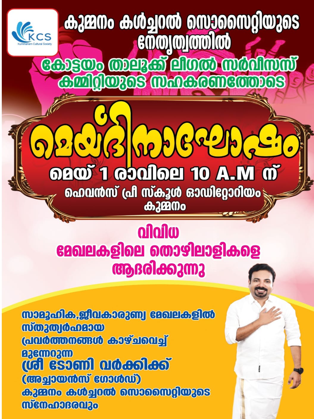 മെയ് 1 രാവിലെ 10 ന് കുമ്മനം ഹെവൻസ് പ്രീ സ്കൂൾ ഓഡിറ്റോറിയത്തിൽ നടക്കുന്ന പരിപാടി