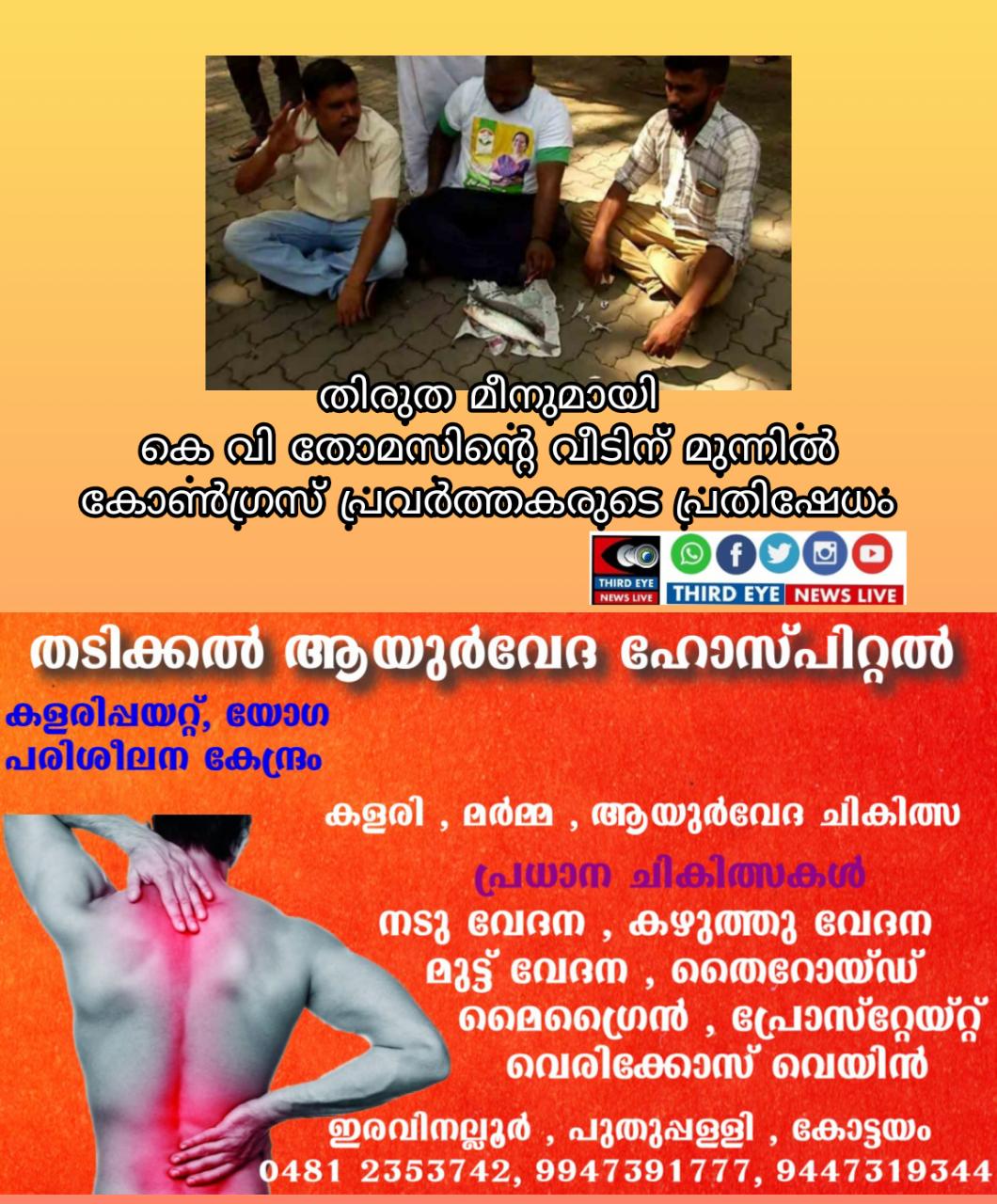 കെ.വി.തോമസിന്റെ വീടിന് സമീപം കോൺഗ്രസ് പ്രവർത്തകർ തിരുത മീനുമായി പ്രകടനം നടത്തിയപ്പോൾ
