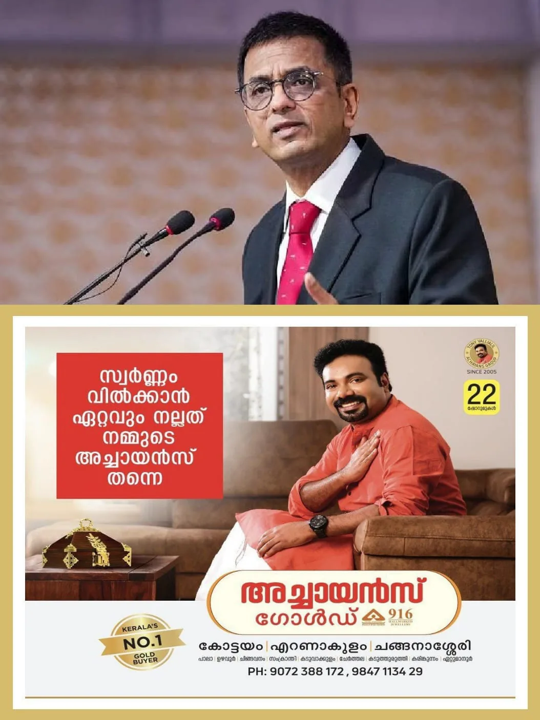 അഭിഭാഷകര് കോടതിയുടെ സുപ്രധാന ഉദ്യോഗസ്ഥരാണെന്നും ഞങ്ങളുടെ നിയമ വ്യവഹാരത്തിന്റെ സത്യവും അന്തസ്സും നിങ്ങളുടെ കൈകളിലാണെന്നും അദ്ദേഹം പറഞ്ഞു. കോടതി വിധികളോട് പ്രതികരിക്കുമ്ബോള് അഭിഭാഷകര് സാധാരണക്കാരില് നിന്ന് വേറിട്ടുനില്ക്കേണ്ടതിന്റെ ആവശ്യകതയുണ്ടെന്ന് ചീഫ് ജസ്റ്റിസ് പറഞ്ഞു.