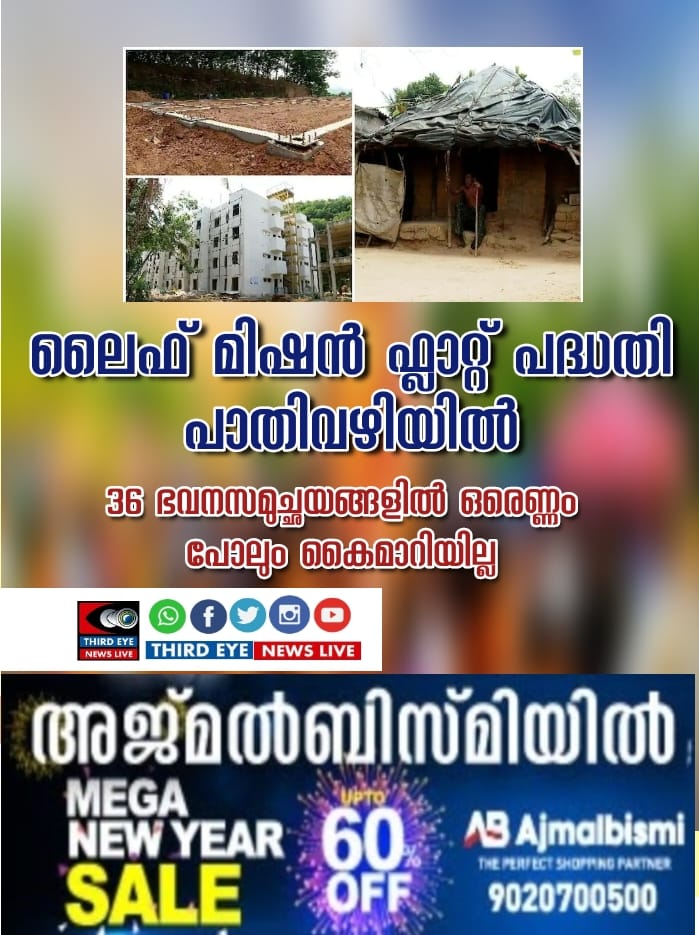 തിരുവനന്തപുരം: വീടും ഭൂമിയും ഇല്ലാത്തവര്ക്ക് ഫ്ലാറ്റ് നിർമിച്ച് നല്കുന്ന പദ്ധതിയായ ലൈഫ് മിഷൻ ഭവന പദ്ധതി ഇഴഞ്ഞു നീങ്ങുന്നു . പിണറായി സര്ക്കാര് അധികാരത്തിലെത്തിയ ശേഷം നിര്മാണം തുടങ്ങിയ 36 ഭവന സമുച്ഛയങ്ങളില് ഒരു ഫ്ലാറ്റ് പോലും കൈമാറിയില്ലെന്ന് വിവരാവകാശ രേഖ.