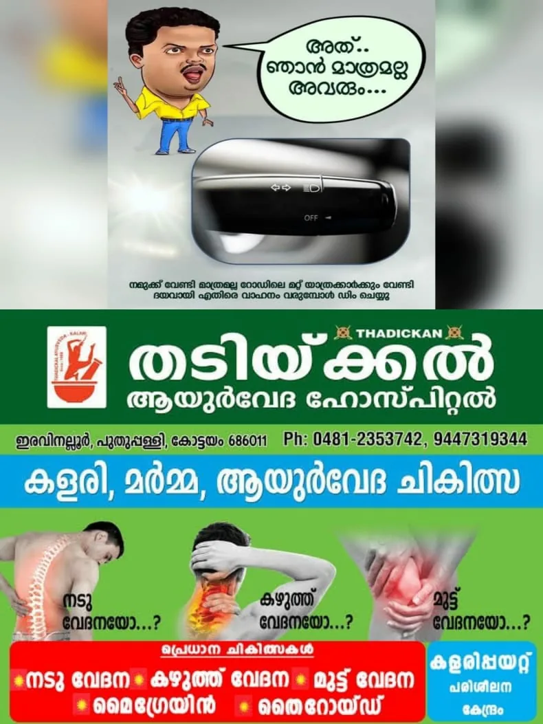‘നമുക്ക് വേണ്ടി മാത്രമല്ല റോഡിലെ മറ്റ് യാത്രക്കാര്ക്കും വേണ്ടി ദയവായി എതിരെ വാഹനം വരുമ്പോള് ഡിം ചെയ്യൂ’- കേരള പൊലീസ് ഫെയ്സ്ബുക്കില് കുറിച്ചു.