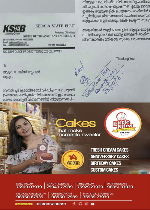 കൊച്ചി: സംസ്ഥാനത്ത് വൈദ്യുതി പ്രതിസന്ധി രൂക്ഷമായ സാഹചര്യത്തിൽ ലോഡ് ഷെഡിങ്ങിനെതിരായ പ്രതിഷേധത്തിൽ ജീവന് സുരക്ഷ ആവശ്യപ്പെട്ടു കെഎസ്ഇബി ഉദ്യോഗസ്ഥർ പരാതി നൽകി. ആലുവ വെസ്റ്റ് ഇലക്ട്രിക്കൽ സെക്ഷൻ അസിസ്റ്റന്റ് എൻജിനീയറാണ് പൊലീസിൽ പരാതി നൽകിയത്.