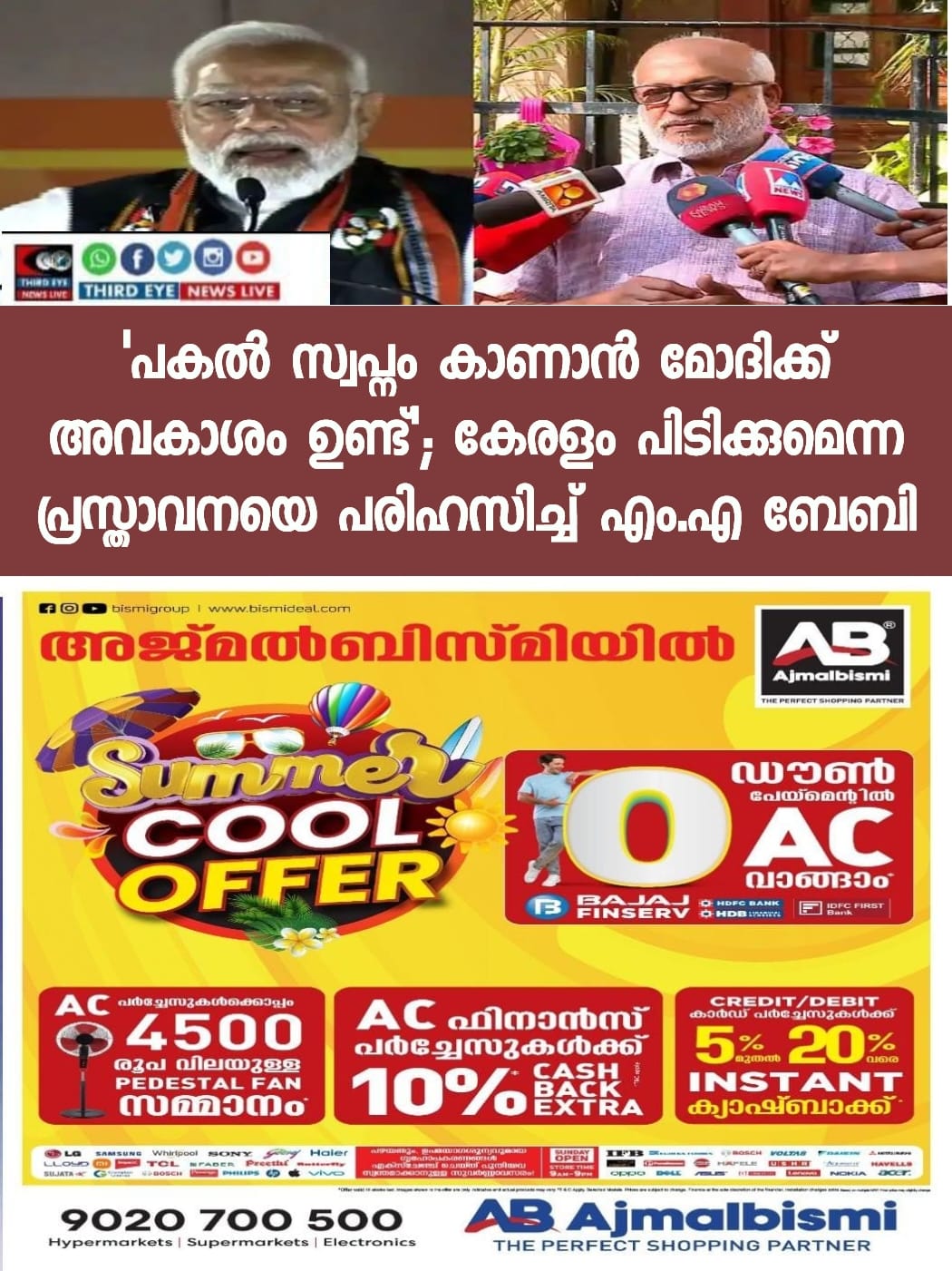 പകല്‍ സ്വപ്നം കാണാന്‍ മോദിക്ക് അവകാശം ഉണ്ട് ; നിയമ സഭയില്‍ ഉണ്ടായിരുന്ന ബിജെപിയുടെ അക്കൗണ്ടും സിപിഎം പൂട്ടിച്ചു; കേരളം പിടിക്കുമെന്ന പ്രധാനമന്ത്രിയുടെ പ്രസ്താവനയെ പരിഹസിച്ച്‌ എം എ ബേബി