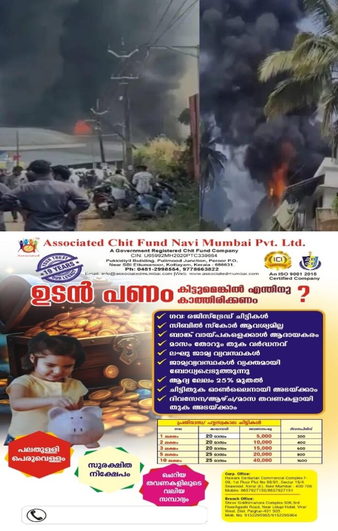 തീ ഉയർന്നത് റബ്ബർ ഫാക്ടറിയില്നിന്നാണെന്നാണ് വിവരം. തുടർന്ന് പല ഭാഗങ്ങളിലേക്കായി വ്യാപിച്ച തീ, രണ്ട് ഭാഗങ്ങളില്നിന്നുകൊണ്ട് അഗ്നിരക്ഷാ സേന അണയ്ക്കാനുള്ള ശ്രമങ്ങള് നടത്തി.
