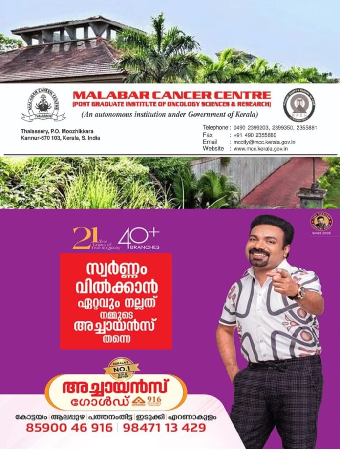 മലബാർ : മലബാർ കാൻസർ സെന്ററിന് കീഴില്‍ ജോലി നേടാൻ അവസരം. എംസിസി പോസ്റ്റ് ഗ്രാജ്വേറ്റ് ഇൻസ്റ്റിറ്റ്യൂട്ട് ഓഫ് ഓങ്കോളജി സയൻസസ് ആന്റ് റിസർച്ചിന് കീഴിലാണ് നിയമനം.