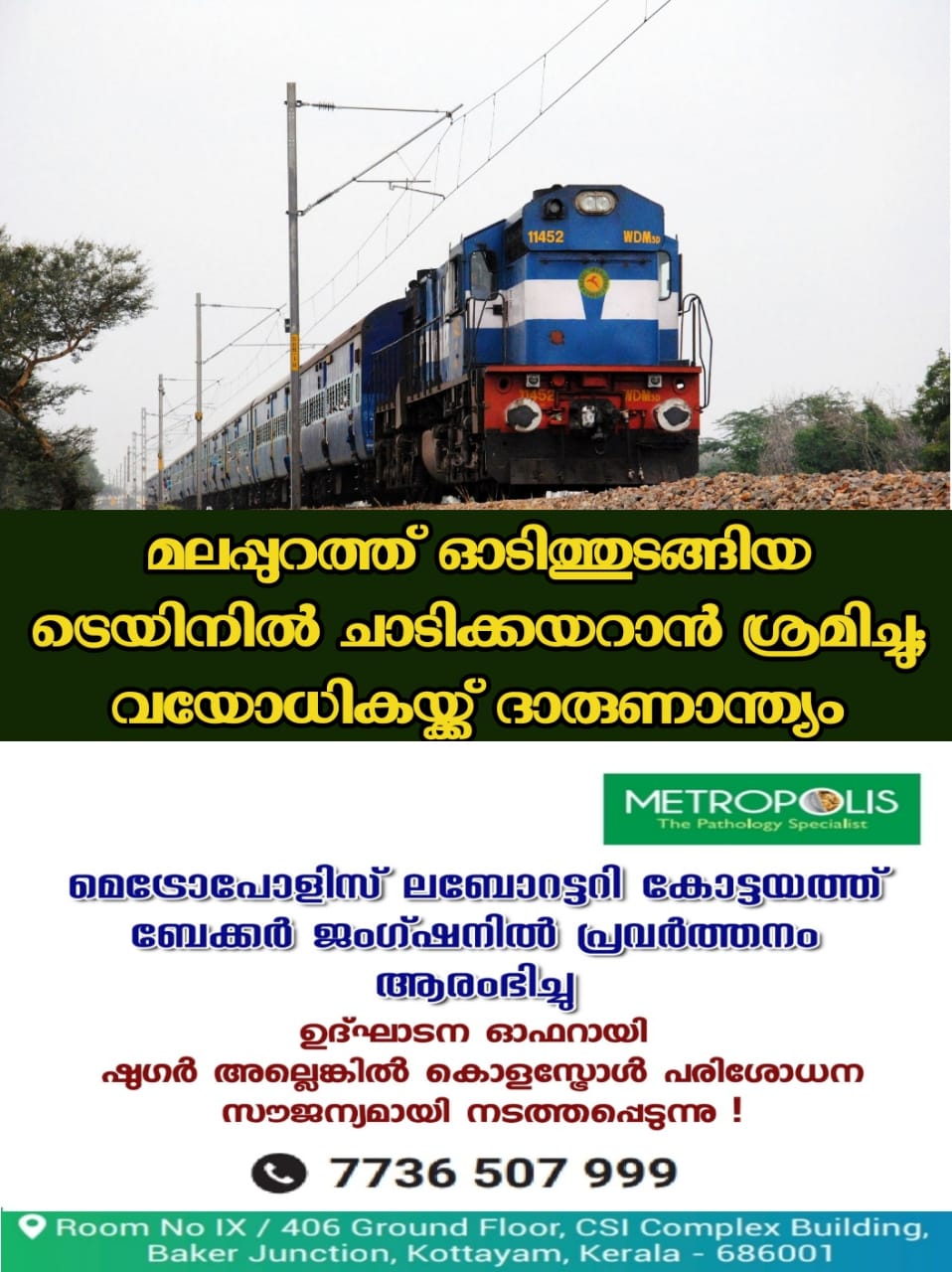 ഓടിത്തുടങ്ങിയ ട്രെയിനിൽ ചാടിക്കയറാൻ ശ്രമിച്ചു; പിടിവിട്ട് പാളത്തിലേക്ക് വീണ സ്ത്രീയുടെ ശരീരത്തിലൂടെ ട്രെയിൻ കയറിയിറങ്ങി; മലപ്പുറത്ത് അറുപത്തിയഞ്ചുകാരിയ്ക്ക് ദാരുണാന്ത്യം