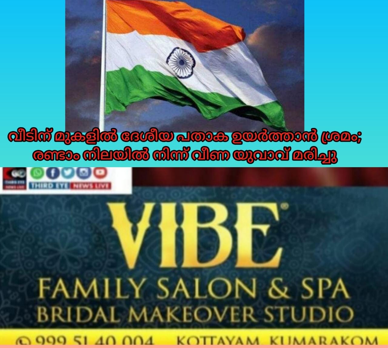വീടിന് മുകളില്‍ ദേശീയ പതാക കെട്ടാൻ ശ്രമിച്ചു ; രണ്ടാം നിലയില്‍ നിന്ന് വീണ യുവാവിന് ദാരുണാന്ത്യം