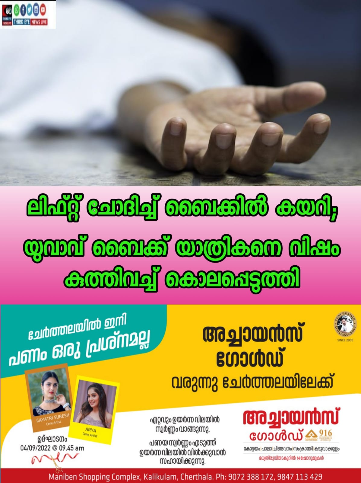 ലിഫ്റ്റ് ചോദിച്ച് ​ബൈക്കിൽ കയറി; യുവാവ് ​​ബൈക്ക് യാത്രികനെ വിഷം കുത്തിവച്ച് കൊലപ്പെടുത്തി