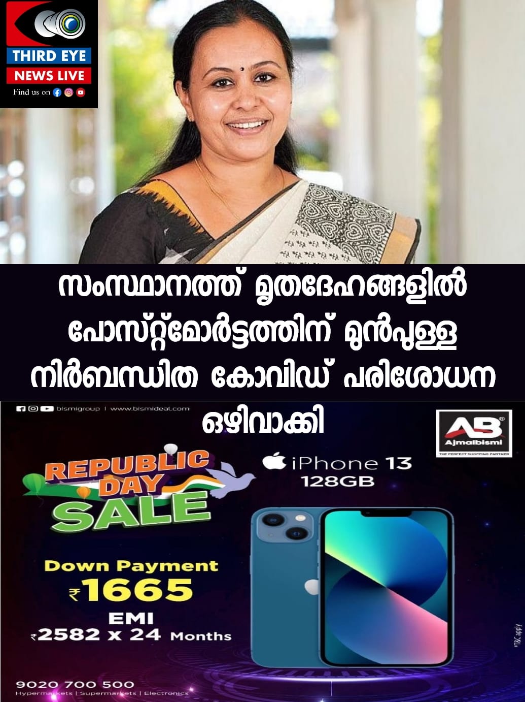 പോസ്റ്റ്മോര്ട്ടത്തിന് മുമ്ബുള്ള നിര്ബന്ധിത കോവിഡ് പരിശോധന ഒഴിവാക്കി. മരണം കോവിഡ് ബാധയെ തുടര്ന്നാണെന്ന് ശക്തമായ ക്ലിനിക്കല് സംശയം തോന്നിയാല് റാപ്പിഡ് ആന്റിജന് ടെസ്റ്റ് മതിയാകും.