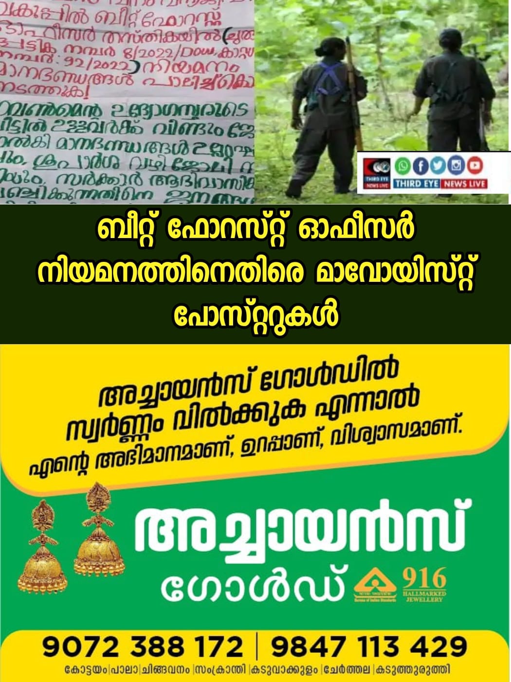 ബീറ്റ് ഫോറസ്റ്റ് ഓഫീസര്‍ നിയമനത്തിനെതിരെ പോസ്റ്റര്‍ പതിച്ച് മാവോയിസ്റ്റ് സംഘം.