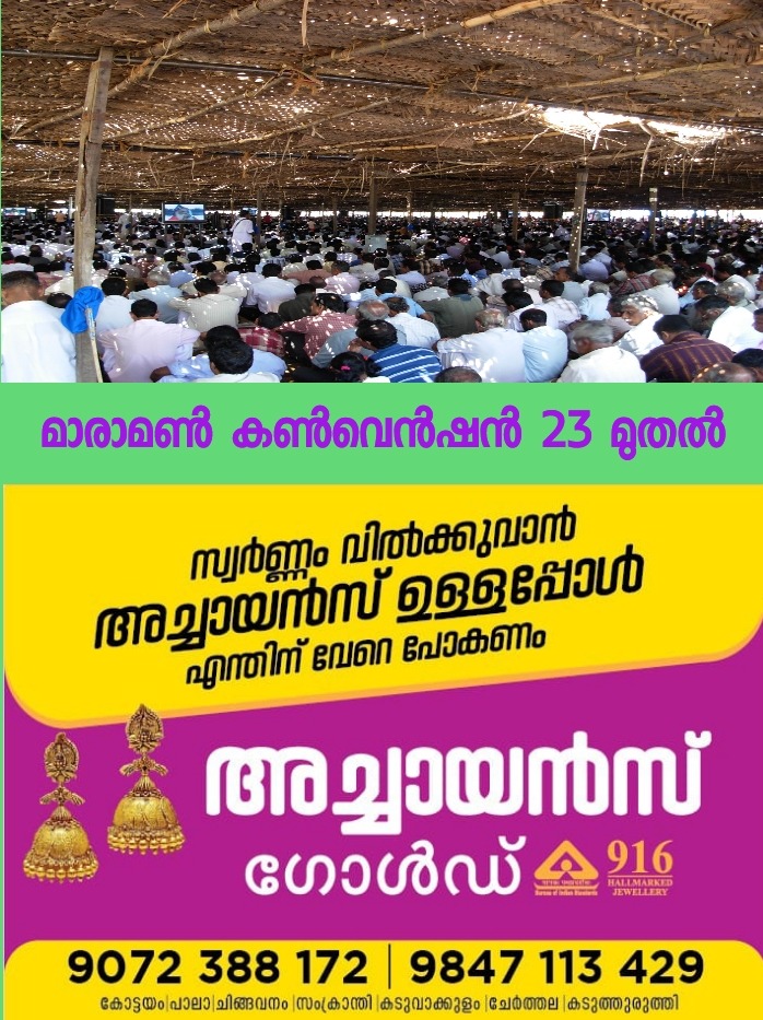 കോഴഞ്ചേരി: മാരാമണ് കരിസ്മാറ്റിക് കണ്വന്ഷന് ഈ മാസം 23 മുതല് 26വരെ നടത്തപ്പെടും. മാരാമണ് സെന്റ് ജോസഫ് റോമന് കത്തോലിക്ക ദേവാലയ അങ്കണത്തില് തയാര് ചെയ്യുന്ന പന്തലിലാണ് കൺവെൻഷൻ നടക്കുക.