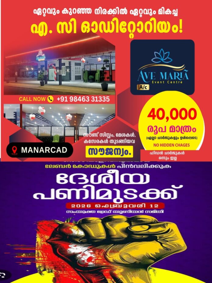 പത്തനംതിട്ട: മാരാമണ് കണ്വെൻഷൻ നടക്കുന്ന കോഴഞ്ചേരി, തോട്ടപ്പുഴശ്ശേരി പഞ്ചായത്തുകളെ വ്യാഴാഴ്ച (ഫെബ്രുവരി 12) നടക്കുന്ന ദേശീയ പണിമുടക്കില് നിന്ന് ഒഴിവാക്കി.