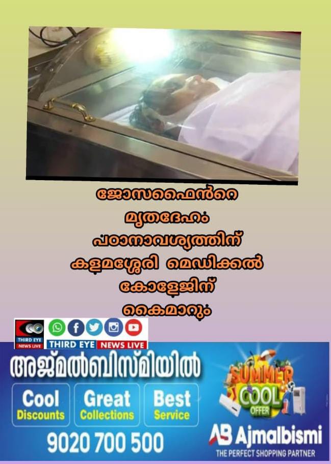 എംസി ജോസഫൈന്റെ മൃതദേഹം പഠനാവശ്യത്തിനായി കളമശേരി മെഡിക്കൽ കോളജിന് കൈമാറും