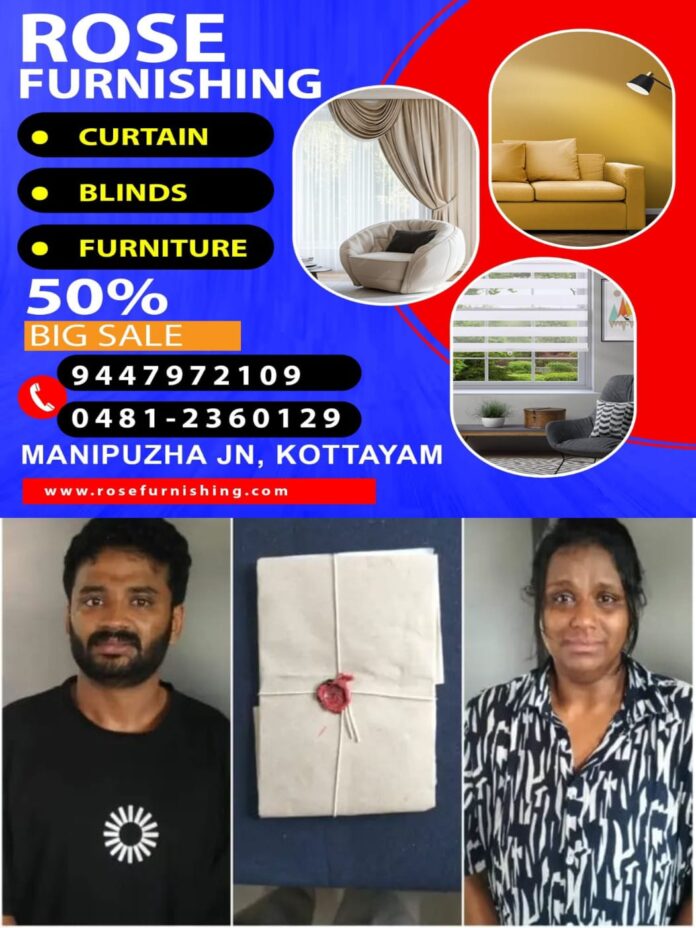 കോഴിക്കോട് അരീക്കോട് ഷഹല് വീട്ടില് ഷാരൂഖ് ഷഹില് (28) തൃശ്ശൂര് ചാലക്കുടി കുരുവിളശ്ശേരി കാട്ടിപ്പറമ്ബില് വീട്ടില് ഷബീന ഷംസുദ്ധീന് എന്നിവരാണ് പിടിയില് ആയത്. ഇവരുടെ കാറും കസ്റ്റഡിയിലെടുത്തു.