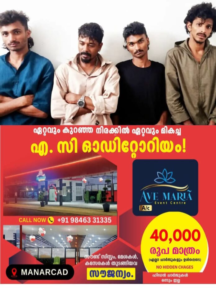 മയക്കുമരുന്ന് കേസ് ഉള്പ്പടെ അഞ്ചോളം കേസുകളില് പ്രതിയായി ജയിലില് കഴിഞ്ഞിട്ടുള്ള കോഴിക്കോട് ഭട്ട്റോഡ് സ്വദേശി റോബര്ട്ട് ജെയിംസ്, പയ്യാനക്കല് സ്വദേശി ഫിനാന് നാസിം, നടുവണ്ണൂര് സ്വദേശി മുഹമ്മദ് റിസ്വാന്, കല്ലായി സ്വദേശി ശഹറീസ് എന്നിവരാണ് പിടിയിലായത്.