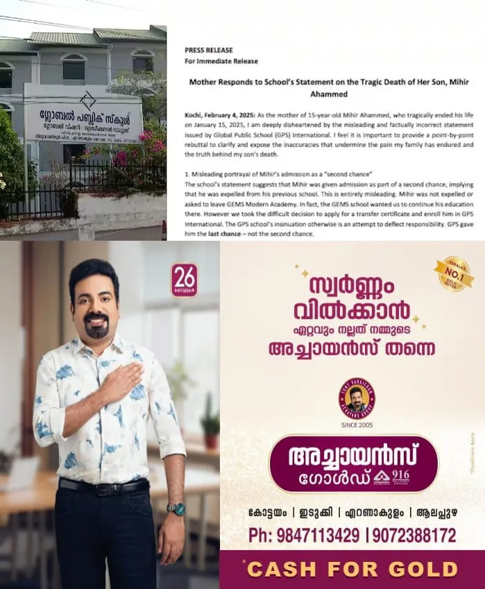 വിശദീകരണ കത്തിലൂടെ സ്കൂള്‍ തെറ്റിധരിപ്പിക്കുന്നു, റാഗിങ്ങിനിരയായ വിവരം സമൂഹമാധ്യമങ്ങളിലൂടെയാണ് അറിഞ്ഞതെന്ന സ്കൂളിന്‍റെ വാദം തെറ്റ്, സ്കൂള്‍ നേരത്തെ ഇടപെട്ടിരുന്നുവെങ്കില്‍ തന്‍റെ മകന്‍ ജീവിനൊടുക്കില്ലായിരുന്നു; മിഹിര്‍ അഹമ്മദിന്‍റെ ആത്മഹത്യയില്‍ ഗ്ലോബല്‍ പബ്ലിക് സ്കൂളിനെതിരെ അമ്മ