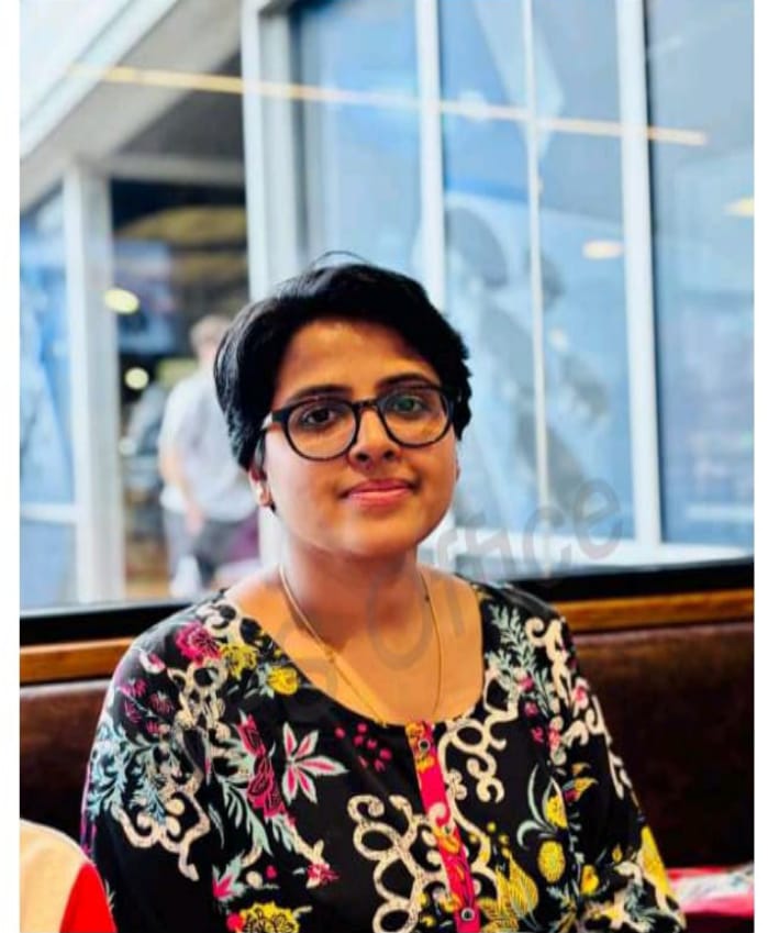 കാണാതാകുമ്പോൾ കറുത്ത കളർ ടീഷർട്ടും ആകാശനീല കളർ ജീൻസുമാണ് ധരിച്ചിരുന്നത്. സ്വർണാഭാരണങ്ങൾ ധരിച്ചിട്ടില്ല. വെളുത്ത നിറം. തലമുടി ബോബ് ചെയ്തിരിക്കുന്നു. കണ്ണട വച്ചിട്ടുണ്ട്.
