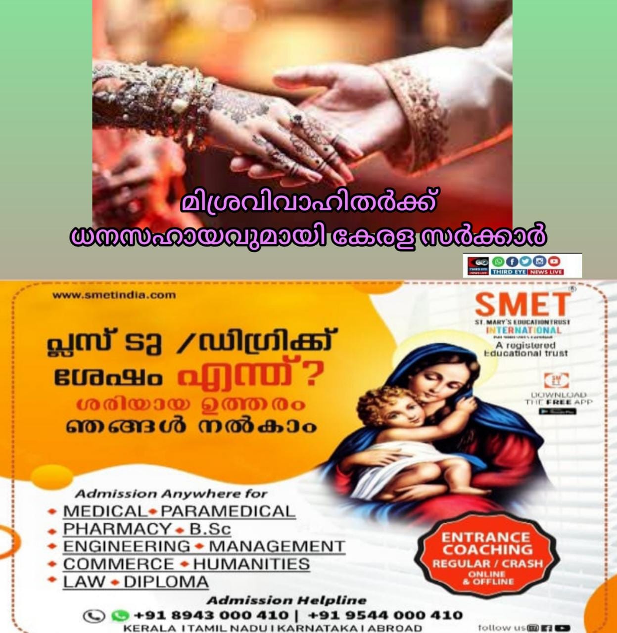 മിശ്രവിവാഹിതർക്ക് ധനസഹായവുമായി കേരള സർക്കാർ;2021 വരെയുള്ള കാലയളവിൽ വിവാഹിതരായവർക്കാണ് ധനസഹായം
