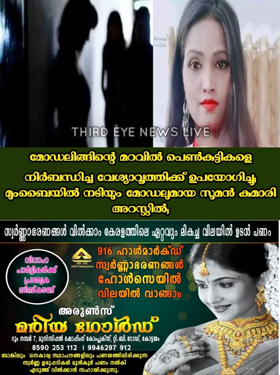 “മോഡലുകളെ നിർബന്ധിച്ച് വേശ്യാവൃത്തിക്ക് ഉപയോഗിച്ചതിനാണ് ഭോജ്പുരി നടി സുമൻ കുമാരിയെ (24) മുംബൈ പോലീസ് അറസ്റ്റ് ചെയ്തത്. മൂന്ന് മോഡലുകളെയും പോലീസ് രക്ഷപ്പെടുത്തി. കൂടുതൽ അന്വേഷണം നടക്കുന്നു,” ക്രൈംബ്രാഞ്ച് വെള്ളിയാഴ്ച ഇറക്കിയ പ്രസ്താവനയിൽ പറഞ്ഞു.