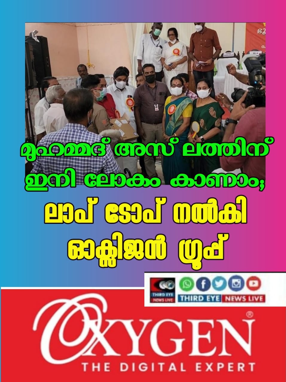 പാമ്പാടിയിൽ വെച്ച് നടന്ന പട്ടയമേളയിലാണ് റവന്യൂ മന്ത്രി കെ.രാജൻ മുഹമ്മദിന് ലാപ് ടോപ് സമ്മാനിച്ചത്. സഹകരണ മന്ത്രി വി എൻ വാസവൻ, മുൻ മുഖ്യമന്ത്രി ഉമ്മൻ ചാണ്ടി, കളക്ടർ പി കെ ജയശ്രീ, എഡിഎം ജിനു പുന്നൂസ് , ഓക്സിജൻ ജനറൽ മാനേജർ സുനിൽ വർഗീസ്, പി ആർ ഓ രാജിവ് കുമാർ എന്നിവർ ചടങ്ങിൽ പങ്കെടുത്തു.
