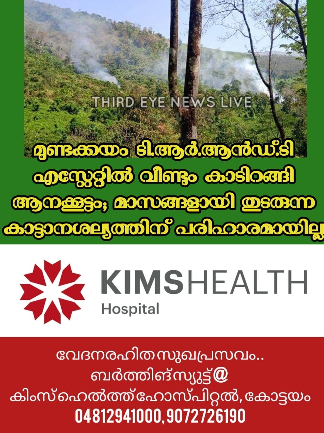 നാട്ടുകാരുടെയും വനംവകുപ്പിന്റെയും നേതൃത്വത്തില് ആനകളെ കാട്ടിലേക്ക് മടക്കിയയ്ക്കാന് ശ്രമം നടക്കുന്നുണ്ടെങ്കിലും പരാജയപ്പെടുകയാണ്. ഇതിനിടയില് കാട്ടാനക്കൂട്ടം ജനവാസ മേഖലയിലേക്ക് കടക്കാതിരിക്കാന് തീയിട്ടത് മറ്റൊരു പ്രതിസന്ധി സൃഷ്ടിച്ചു. ഇത്മൂലം മേഖലയിലെ ഏക്കര് കണക്കിന് സ്ഥലം കത്തി നശിച്ചു. കാഞ്ഞിരപ്പള്ളിയില് നിന്ന് അഗ്നിശമനസേനാംഗങ്ങളെത്തി തീയണയ്ക്കാനുള്ള ശ്രമം തുടരുകയാണ്.