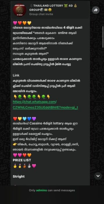 മുണ്ടക്കയം കേന്ദ്രമായി പ്രവർത്തിക്കുന്ന ഒരു ഓൺലൈൻ ചാനിലിൽ ആണ് ഇത്തരം തട്ടിപ്പ് സംഘങ്ങളുടെ വാട്സാപ്പ് ഗ്രൂപ്പ് ലിങ്ക് ഷെയർ ചെയ്യുന്നത്,