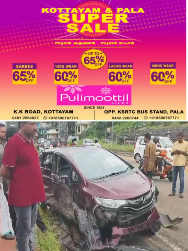 മാരുതി കാറിൽ ആരും ഇല്ലാതിരുന്നതിനാൽ വലിയ അപകടം ഒഴിവായി. കാർ പൂർണമായും തകർന്നു. ഹോണ്ട ജാസ്കാറിൽ രണ്ടുപേർ ഉണ്ടായിരുന്നെങ്കിലും പരിക്ക് ഏൽക്കാതെ രക്ഷപ്പെട്ടു.