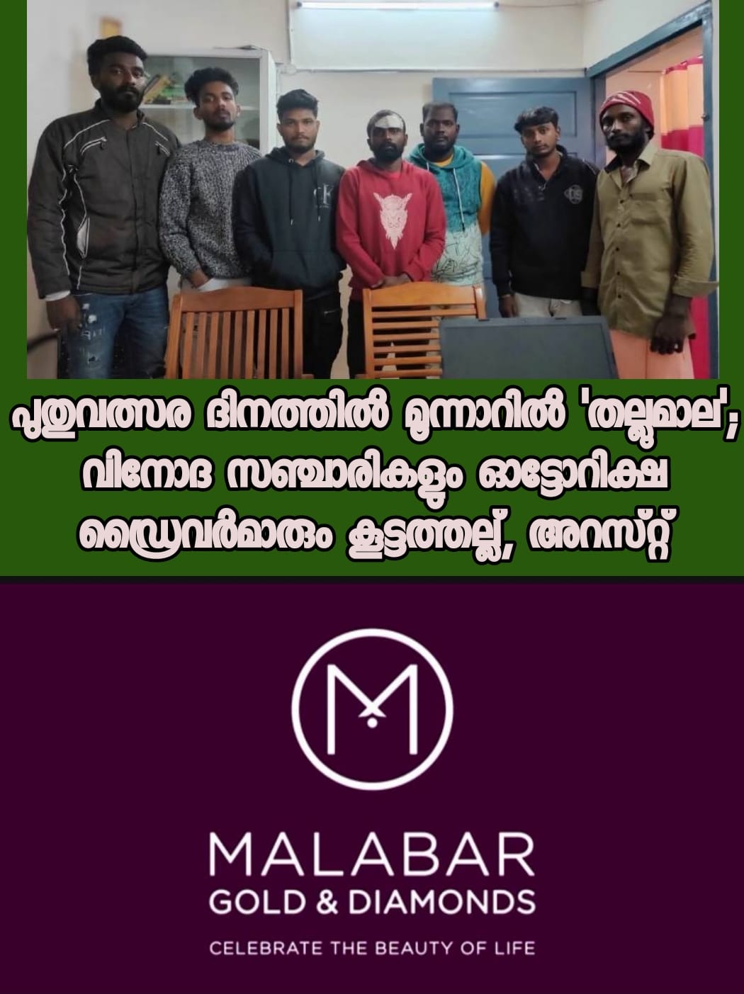 മൂന്നാർ: പുതുവത്സര ദിനത്തിൽ മൂന്നാറിൽ വിനോദ സഞ്ചാരികളും ഓട്ടോ ഡ്രൈവർമാരും തമ്മിൽ ഏറ്റുമുട്ടലിൽ ഏഴുപേർ അറസ്റ്റിൽ. മൂന്നാർ ലക്ഷ്മി സ്വദേശികളായ അജിത് കുമാർ, വിശ്വ, സുധാകരൻ, കളമശ്ശേരി എച്ച്എംടി കോളനി സ്വദേശികളായ അഫ്രീദ് അഹമ്മദ്, മുഹമ്മദ് ബിലാൽ, ഹാഫിസ്, ആഷിക് എന്നിവരെയാണ് അറസ്റ്റു ചെയ്തത്.