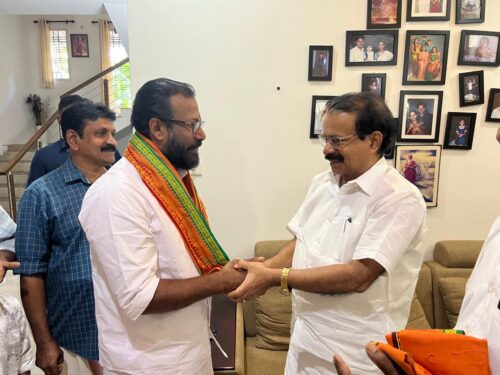 ബിജെപി ജില്ലാ പ്രസിഡന്റ് ലിജിൻ ലാൽ ,കോൺഗ്രസിൽ നിന്നും രാജി വെച്ച് ദേശീയതയിലേക്കു വന്ന മുരളി കൃഷ്ണനെയും കൂട്ടരെയും അഭിനന്ദിച്ചു .