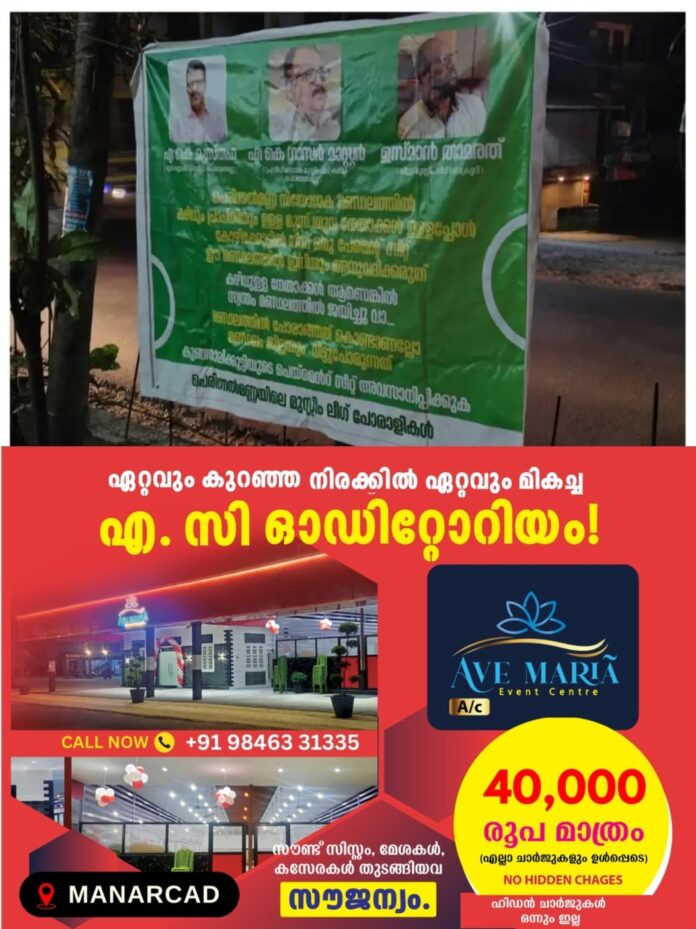 അതേ സമയം യുഡിഎഫില്‍ ആശയക്കുഴപ്പം ഉണ്ടാക്കാൻ ഇടത്പക്ഷമാണ് ബോർഡ് സ്ഥാപിച്ചത് എന്ന് മുസ്ലിം ലീഗ് ആരോപിക്കുന്നു. മുസ്‌ലിം ലീഗ് പോരാളികള്‍ എന്ന പേരില്‍ ആണ് ഫ്ലെക്സ് പ്രത്യക്ഷപ്പെട്ടിരിക്കുന്നത്.