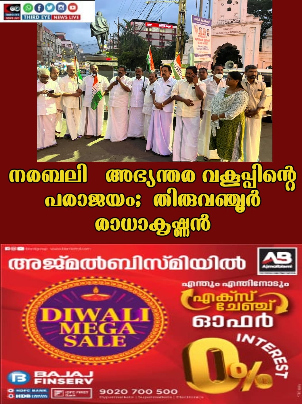 കോട്ടയം: കേരളത്തിൽ നരബലിയും,ദുർമന്ത്രവാദവും അതിനോടനുബന്ധിച്ചു മനുഷ്യരെ കാണാതാകലും നിത്യ സംഭവം ആയിരിക്കുന്നു. അഭ്യന്തര വകുപ്പിന്റെ പരാജയം കേരള ത്തെ അരാചകത്തിൽ എത്തിച്ചു ലോകത്തിനു മുൻപിൽ കേരളം തലകുനിച്ചു എന്നും തിരുവഞ്ചൂർ രാധാകൃഷ്ണൻ പറഞ്ഞു. ദേശീയ അസംഘടിത തൊഴിലാളി കോൺഗ്രസ് സംഘടിപ്പിച്ച പ്രതിക്ഷേധസമരം ഉദ്ഘാടനം ചെയ്യുകയായിരുന്നു അദ്ദേഹം.